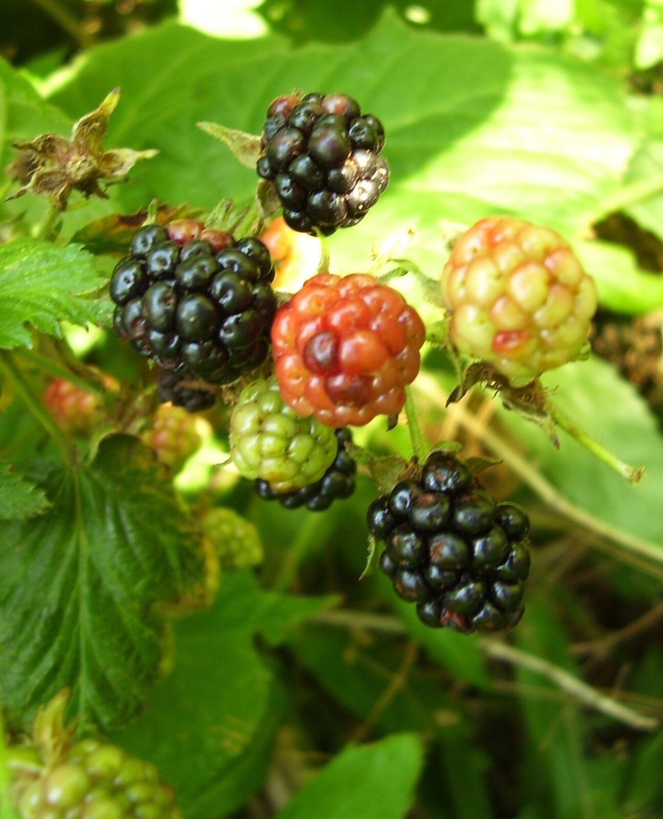 blackberries1 7-26-2014 Published July 26, 2014 at 1295 × 1600 in Foraged Blackberry Vinegar and Syrup: Summer Goodness Year ′Round Blackberries–ripe, unripe, and very unripe