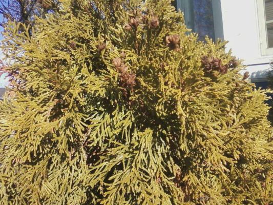arbor vitae1-12-2015 Published December 5, 2015 at 533 × 400 in Foraging for Winter Decorations Arbor vitae with cones.